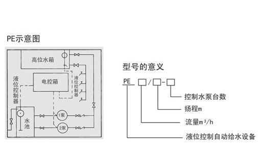 該設備由水泵機組、電控系統(tǒng)、液位控制器、閥門管路、共同底座等組成, (見示意圖)