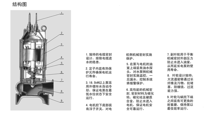 QW系列潛水排污泵體積小、結(jié)構(gòu)緊湊、效率高、可以根據(jù)用戶要求進行水位自動控制,并備有自動保護裝置及控制柜,雙導(dǎo)軌自動安裝系統(tǒng)等。